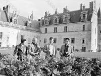 0-395263-ч/б Члены советско-французского экипажа космического корабля "Союз Т-6" (слева направо): летчик - космонавт СССР, Герой Советского Союза Л.Д.Кизим, летчик - космонавт СССР, дважды Герой Советского Союза В.А.Джанибеков, французский космонавт, Герой Советского Союза Жан-Лу Жак Мари Кретьен, летчик - космонавт СССР, Герой Советского Союза А.С. Иванченков во время поездки во Францию, организованную Национальным центром космических исследований Франции. Франция. Сентябрь 1982г. Фот. Фот. Соболев В.