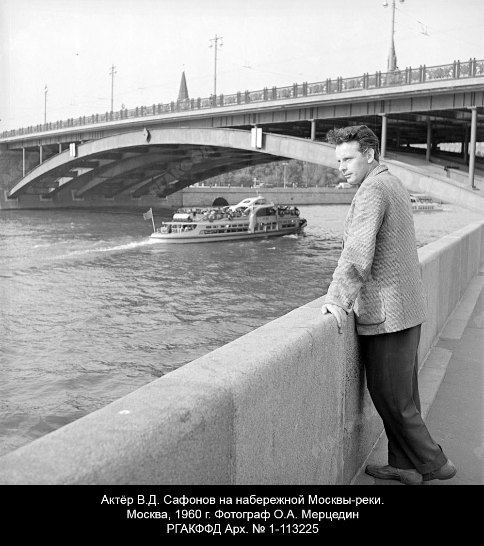 Неслучайно известный фотограф О.А. Мерцедин, сотрудничавший с журналом «Советский фильм», в 1960 г. провёл большую портретную съёмку В.Д. Сафонова в знаковых местах столицы и в домашней обстановке. Три фотодокумента из той памятной серии РГАКФФД