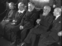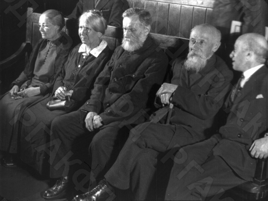 Участники процесса по делу 1 марта 1881 года: Ф.А. Морейнис-Муратова, А.В. Дьяковская, М.Ф. Фроленко, М.П. Сажин, Е.М. Сидоренко на вечере воспоминаний о 1 марта 1881 г. в Политехническом музее.