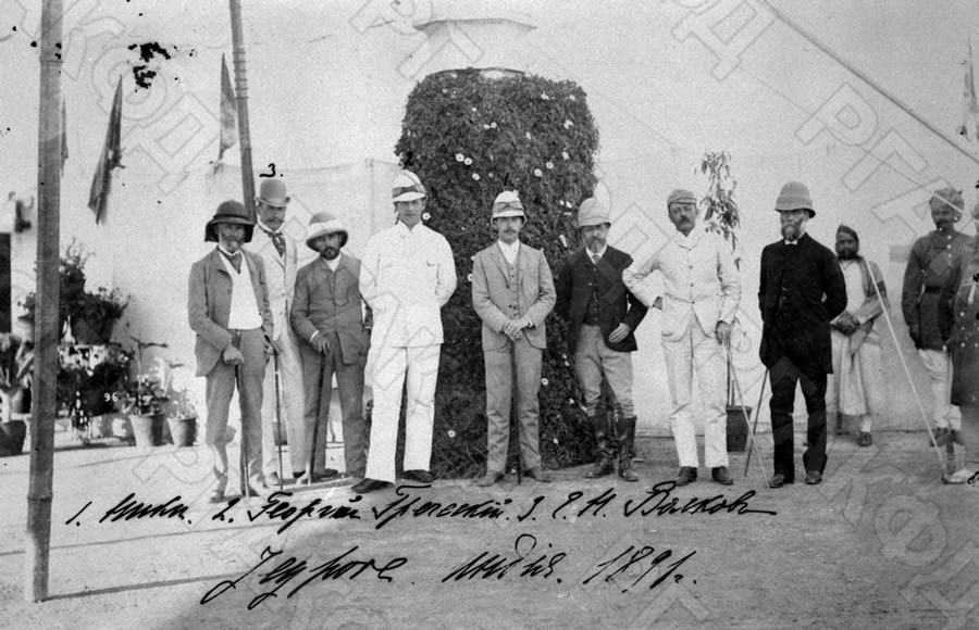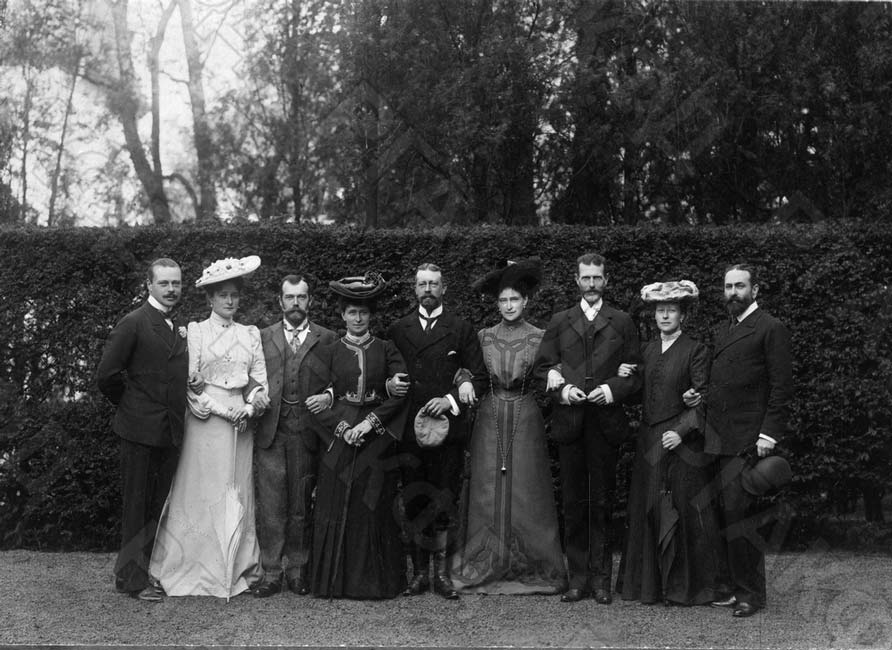 Великий герцог Эрнст Людвиг, императрица Александра Федоровна, император Николай II, принцесса Гессенская Ирэн, принц Генрих Прусский, великая княгиня Елизавета Федоровна, великий князь Сергей Александрович, принцесса Гессенская Виктория, принц Людвиг фон Баттенберг.