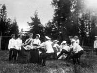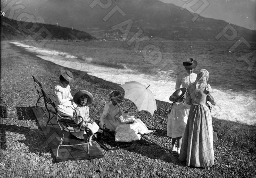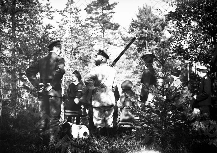 Члены императорской семьи и офицеры яхты «Штандарт» на отдыхе во время путешествия в финские Шхеры. Среди присутствующих: великая княгиня Ольга Александровна и великие княжны Мария Николаевна, Анастасия Николаевна и Татьяна Николаевна.