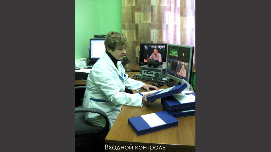 По ГОСТу 7.68.95 видеодокументы должны подвергаться контролю в процессе хранения 1 раз в 5 лет (Слайды 29-30). Однако профилактическую перемотку видеодокументов необходимо проводить 1 раз в 2 года (кассета без остановки перематывается с начала на конец и с конца на начало). Хранить кассеты рекомендуется в футляре, в вертикальном положении. Необходимо беречь видеокассеты от воздействия магнитных полей, т.е. в хранилище не должно быть никакой техники (телевизоров, компьютеров и др.). Контроль технических параметров видеодокументов проводят с помощью контрольно-измерительной аппаратуры: видеомагнитофона, монитора, счетчика выпадения по строкам, измерителя уровня шума, индикатора уровня звука, осциллографа (Слайд 31).