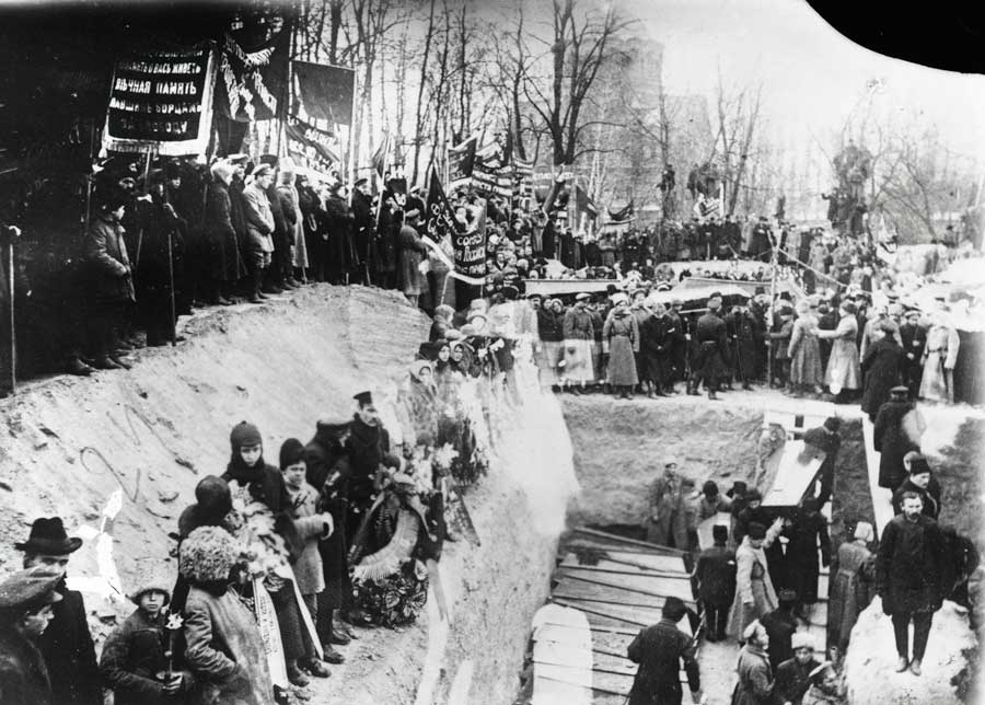Уже 4 марта в Москве на Братском кладбище состоялись похороны трех солдат 2-й запасной автомобильной роты, погибших в дни революции. На Арбатской площади прошел траурный митинг. В процессии принимали участие 70 тысяч москвичей, которые несли красные знамена, букеты красных цветов. Церемония представляла собой комбинацию ритуалов торжественных военных похорон и политической рабочей демонстрации.[10] Эту траурную процессию и запечатлел фоторепортер.