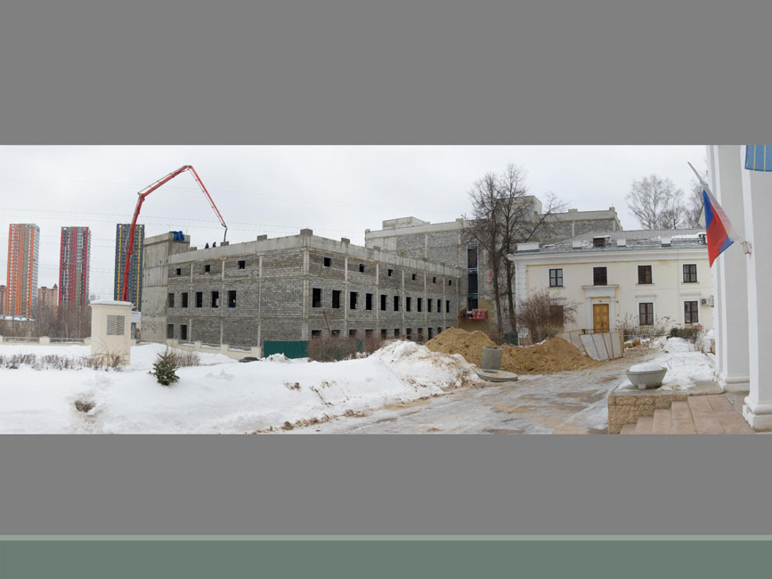 За 2018 г. выросли 2 корпуса нового архивного здания (слайды 4–13). Возведены внешние стены, внутренние перегородки, установлены окна и витражи. Построена переходная галерея в существующее здание архива. Закуплена газовая котельная, лифтовое оборудование, оборудование для оснащения многофункционального кинозала, а также часть технологического оборудования для обеспечения современного хранения фотодокументов, сканирования, цифровой реставрации кино- и фотодокументов.