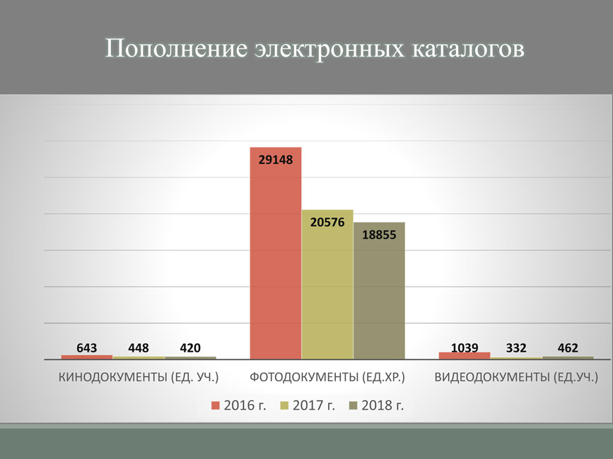 За 2018 год электронные каталоги архива пополнились информацией (слайд 33) о: