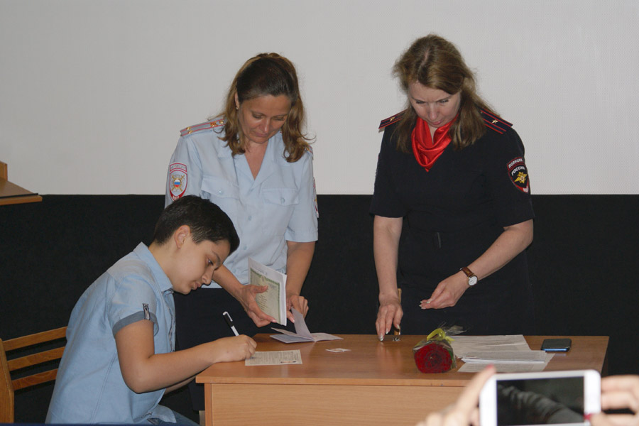 Паспорта вручила начальник ОУФМС России по Красногорскому району, полковник внутренней службы Гаркуша Ольга Николаевна. Напутствуя ребят, она подчеркнула, что в этот день они получают свой самый первый и самый важный документ, который будет сопровождать их всю жизнь.