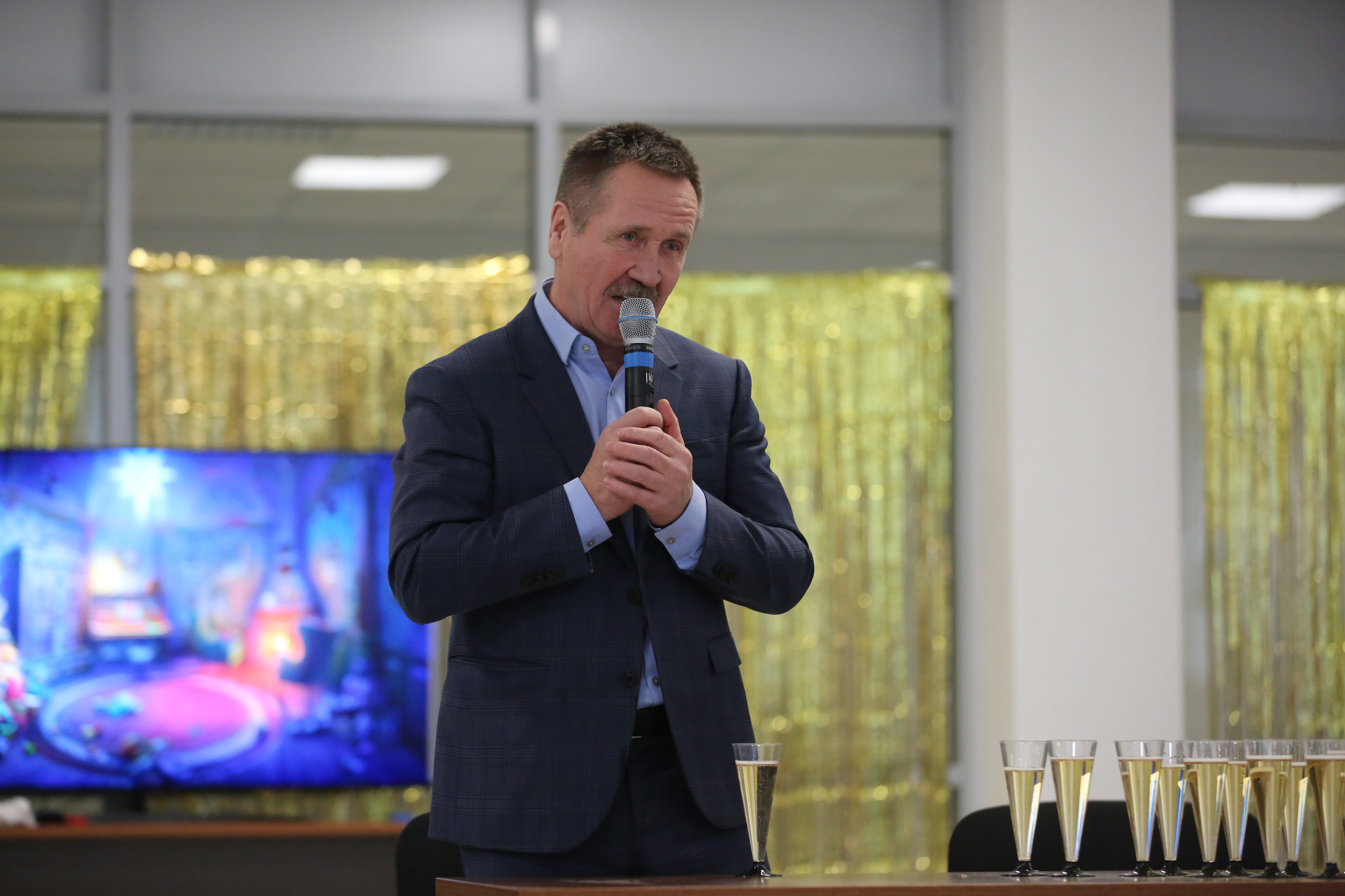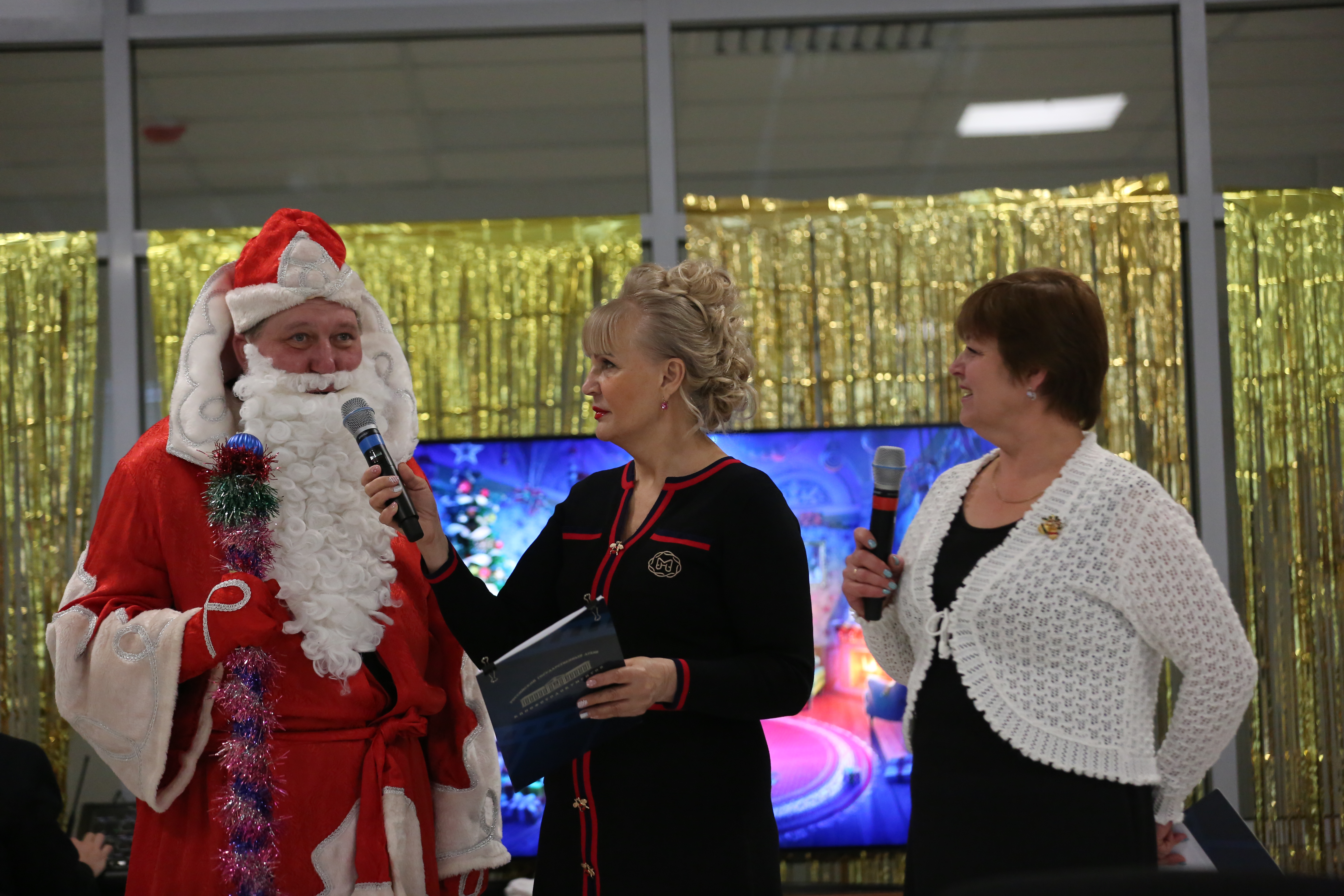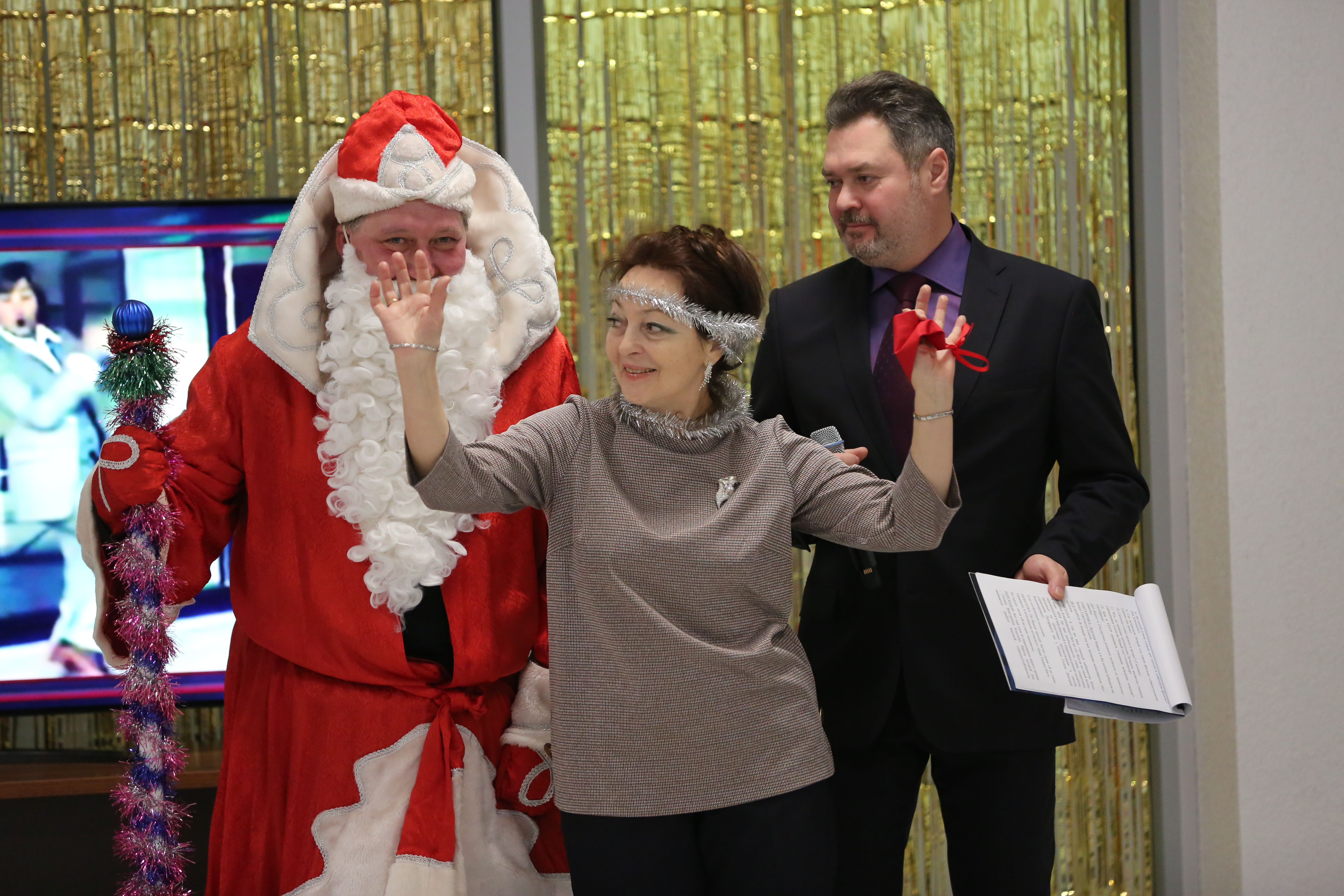 В выставочном зале нового лабораторного корпуса архива прошел Голубой огонёк, приуроченный к 100-летию образования СССР. На экране демонстрировались отрывки музыкальных произведений в исполнении представителей всех 15-ти республик Советского Союза, а ведущие вечера – Р.М. Моисеева и С.В. Переходов – представляли слово сотрудникам, ветеранам и руководителям архива, которые сердечно поздравляли присутствующих с наступающим Новым Годом, желали всем здоровья, мира и благополучия!