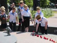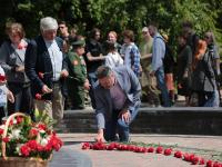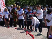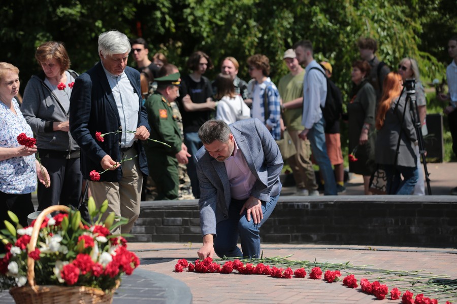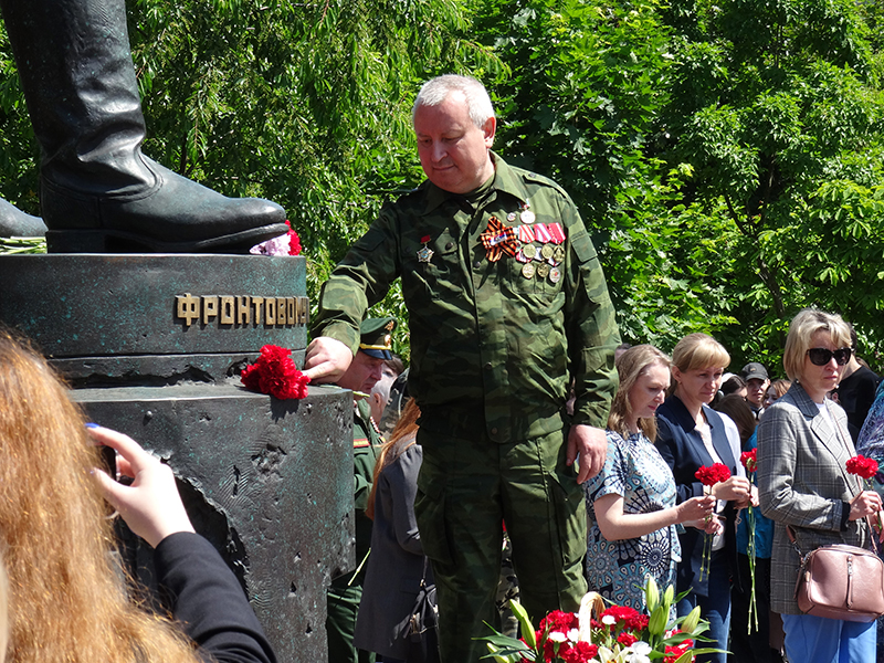 Присутствующие почтили память погибших в Великой Отечественной войне минутой молчания и возложили цветы к монументу.