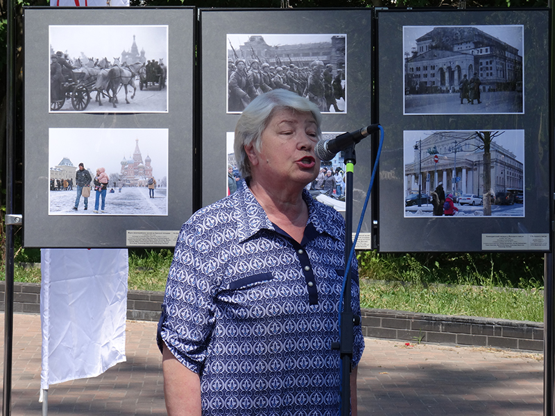 В течение всего дня на уличном экране шла демонстрация киножурналов из фонда РГАКФД, снятых в 1941 году: «На защиту родной Москвы» и «Народное ополчение».