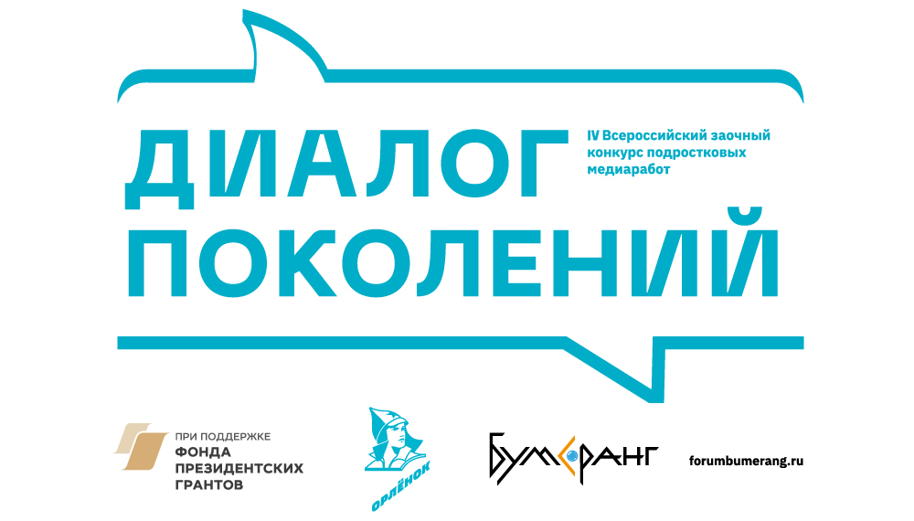 Открыт приём фильмов на IV Всероссийский заочный конкурс подростковых медиаработ «Диалог поколений», организованный Всероссийским детским центром «Орлёнок» и Детским медийный объединением «Бумеранг» при поддержке Фонда президентских грантов. Заявку на участие в конкурсе можно подать до 31 мая 2023 года на официальном сайте конкурса - https://диалог-поколений.рус/. 200 победителей конкурса приглашаются для участия в программе XVIII Всероссийского открытого фестиваля-форума детского и юношеского экранного творчества «Бумеранг», который пройдет в ВДЦ «Орленок» с 7 по 27 сентября 2023 года. В рамках фестиваля-форума состоится III Всероссийский питчинг юных кинематографистов (призовой фонд - 2 000 000 рублей).