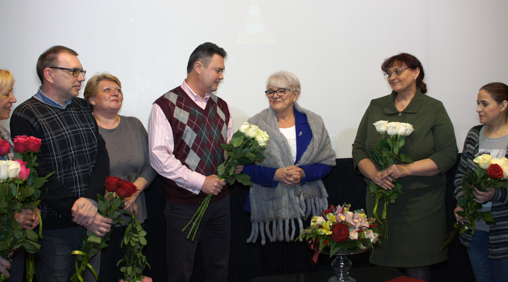 Собравшиеся в кинозале сотрудники тепло поздравили своего директора, а в качестве одного из подарков архивисты подготовили юбиляру небольшой видеоклип, отражающий этапы трудового пути Наталии Александровны.
