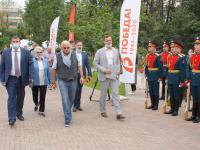 Среди гостей, участвовавших в открытии монумента, присутствовали более 60 детей и внуков фронтовых кинооператоров с портретами своих родственников.
