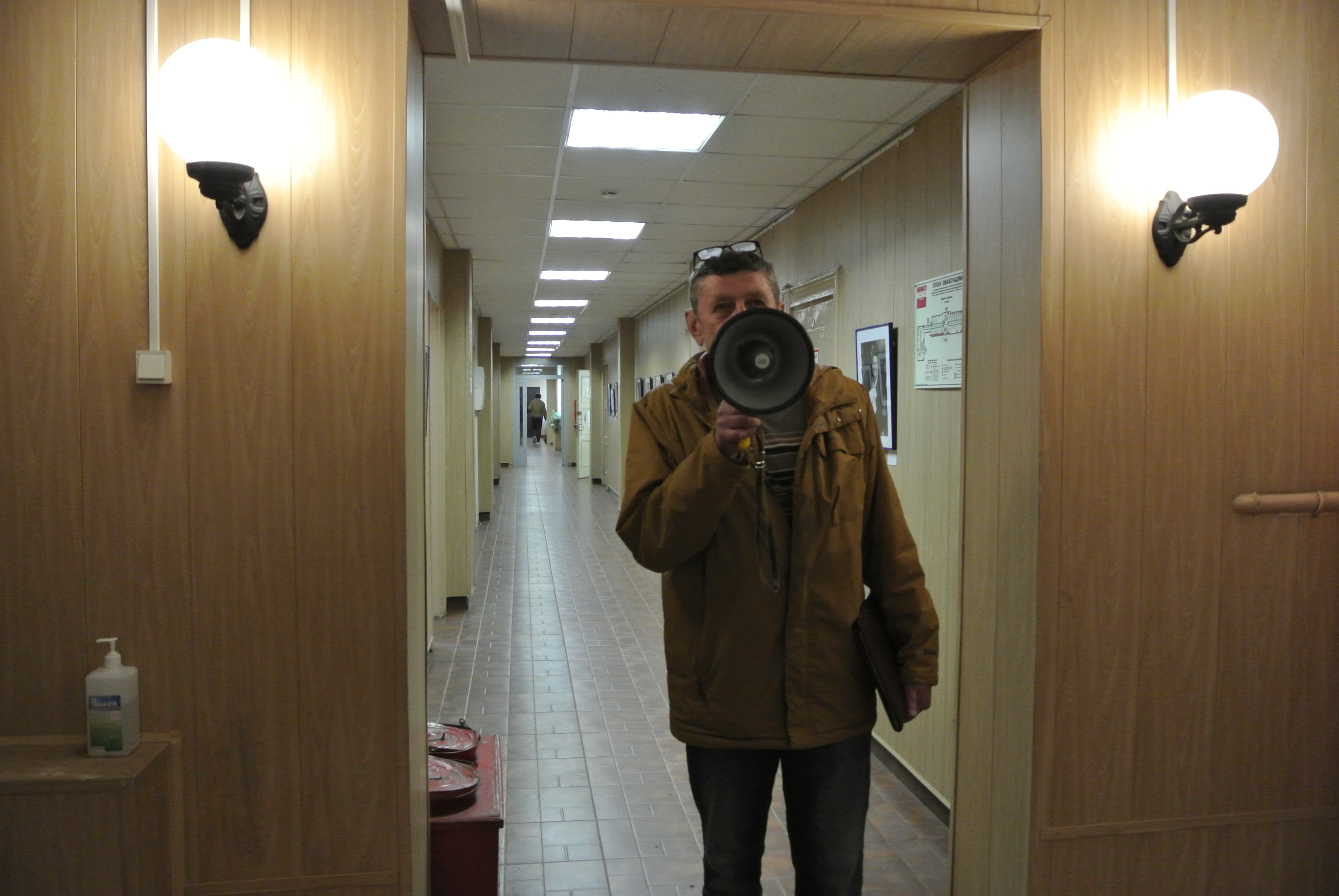 На третьем этапе тренировки была осуществлена подача сигнала о возникновении условного задымления на 1-ом этаже здания архива корпуса «Б». задымление было обнаружено заведующей хранилища кинодокументов на нитрооснове В.А. Лугачевой. В результате использования ручного пожарного извещателя (ИПР), на центральный пункт пожарной связи 4 ПСЧ 15 ПСО ФПС ГУ МЧС России по Московской области и на пульт дежурного пожарного поста РГАКФД от системы охранно-пожарной сигнализации, поступил сигнал пожарной тревоги. В автоматическом режиме произведён запуск системы оповещения и управления эвакуацией людей при пожаре.
