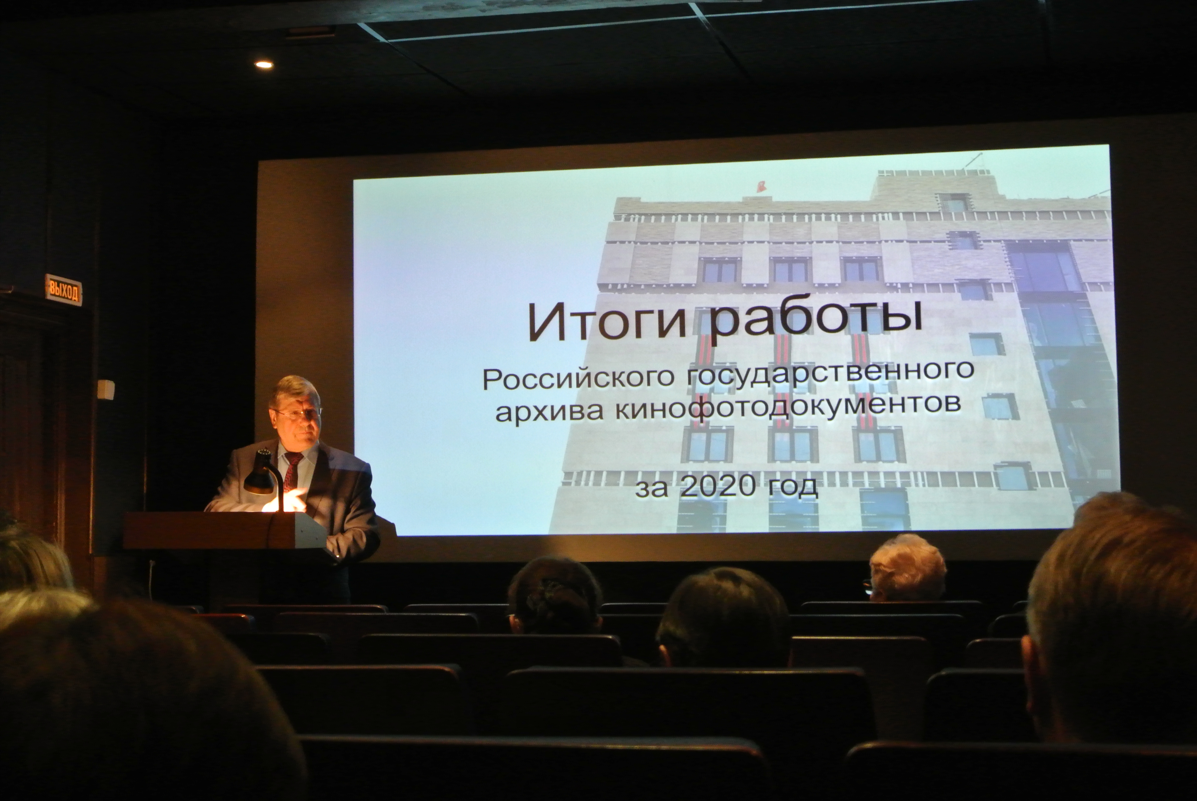 В своих выступлениях представители руководства архива остановили свое внимание как на успехах, так и на проблемах, с которыми пришлось столкнуться коллективу РГАКФД в 2020-м году. Несмотря на непредвиденные обстоятельства, связанные с распространением коронавирусной инфекции, годовой план был выполнен на 85,2%. Продолжилось строительство нового лабораторного корпуса. Архив сумел организовать работу по всем основным направлениям деятельности и успешно справился с поставленными задачами.