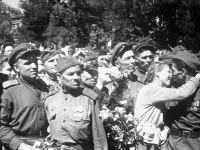 Телеконференция: Москва – Волгоград – Самара – Краснодар. Передача детям фронтовика Петра Московченко фотографии, на которой запечатлены первые секунды счастливой встречи с дочерью Лидой после возвращения домой с войны: