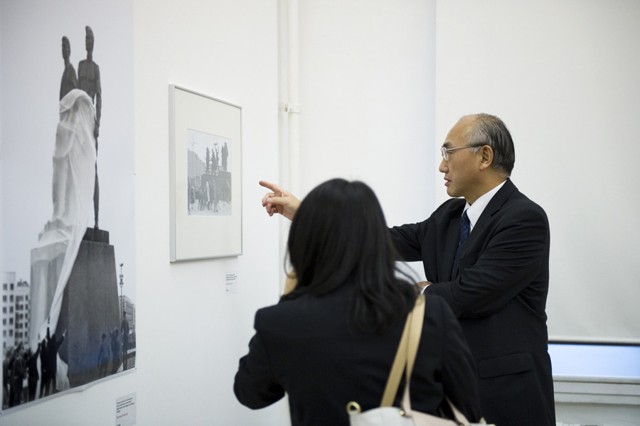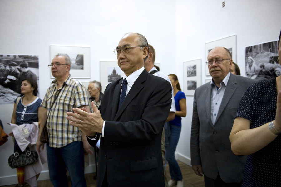 На церемонии открытия выставки (слева направо): заместитель начальника отдела информационного обеспечения РГАКФД Е.Е. Колоскова, генеральный директор Государственного музея политической истории России Е.Г. Артемов, генеральный директор музейно-выставочного центра «РОСФОТО» З.М. Коловский, директор Центрального государственного архива кинофотофонодокументов г. Санкт-Петербурга О.И. Морозан, куратор выставки стороны музейно-выставного центра «РОСФОТО» Е.А. Агафонова