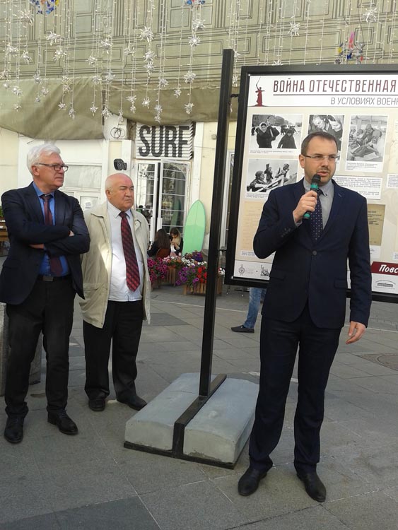 8 мая 2018 г. заместитель директора архива Римма Максимовна Моисеева присутствовала и выступила с приветственным словом на открытии модульной выставочной экспозиции «Война Отечественная – Победа народная!», которое состоялось в рамках проекта «История России в архивных документах и фотографиях. Выставки на Никольской–2018».