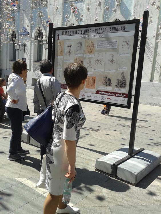 Выставка экспонируется в районе пешеходной зоны на улице Никольская. На следующий день – 9 мая – по ней прошли тысячи участников акции Бессмертный полк!