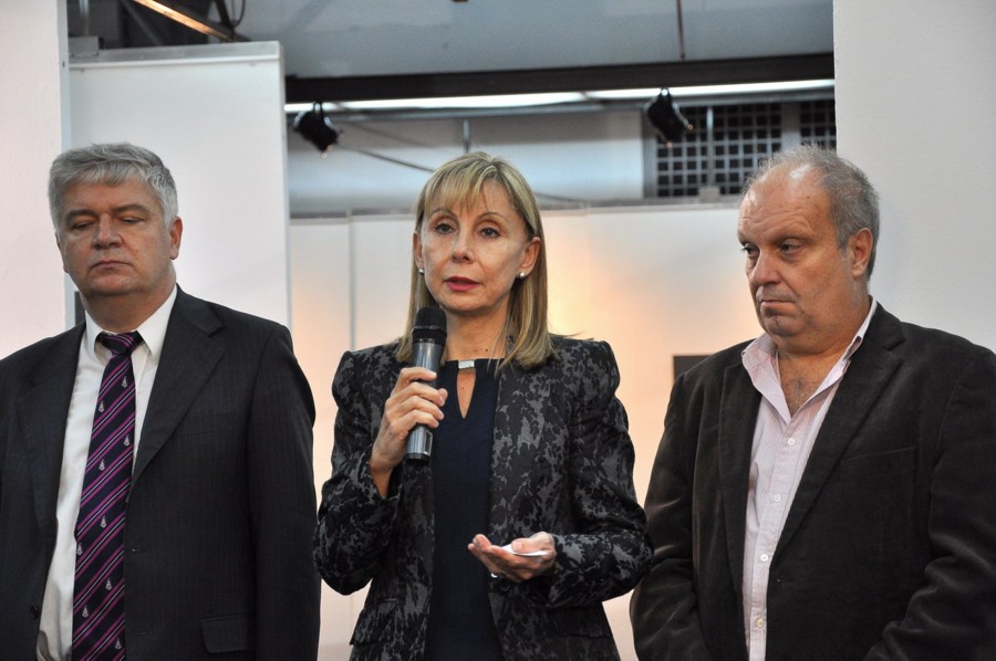 Церемония торжественного открытия выставки. Выступает Заместитель министра культуры г. Буэнос-Айреса г-жа Мария Виктория Алкараз. Слева - советник-посланник Посольства Российской Федерации в Аргентинской Республике Д.В. Белов, справа - Министр культуры г. Буэнос-Айреса г-н Герман Ламбарди.