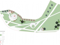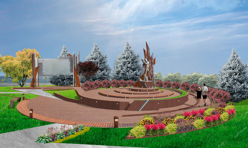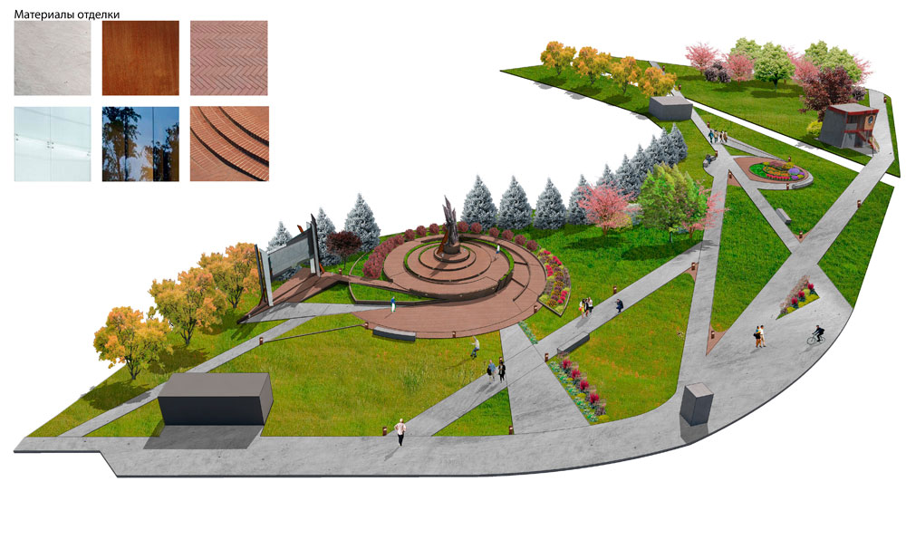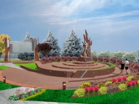 В решении общей задачи по благоустройству территории активно участвует продуманное композиционное решение дендроплана. Фоновую кулису композиции памятника создают ели колючие «Hoopsii». Это одна из лучших разновидностей ели колючей с характерным правильным габитусом куста и серебристо-голубым окрасом хвои, что создаст прекрасный контраст материалам памятника.