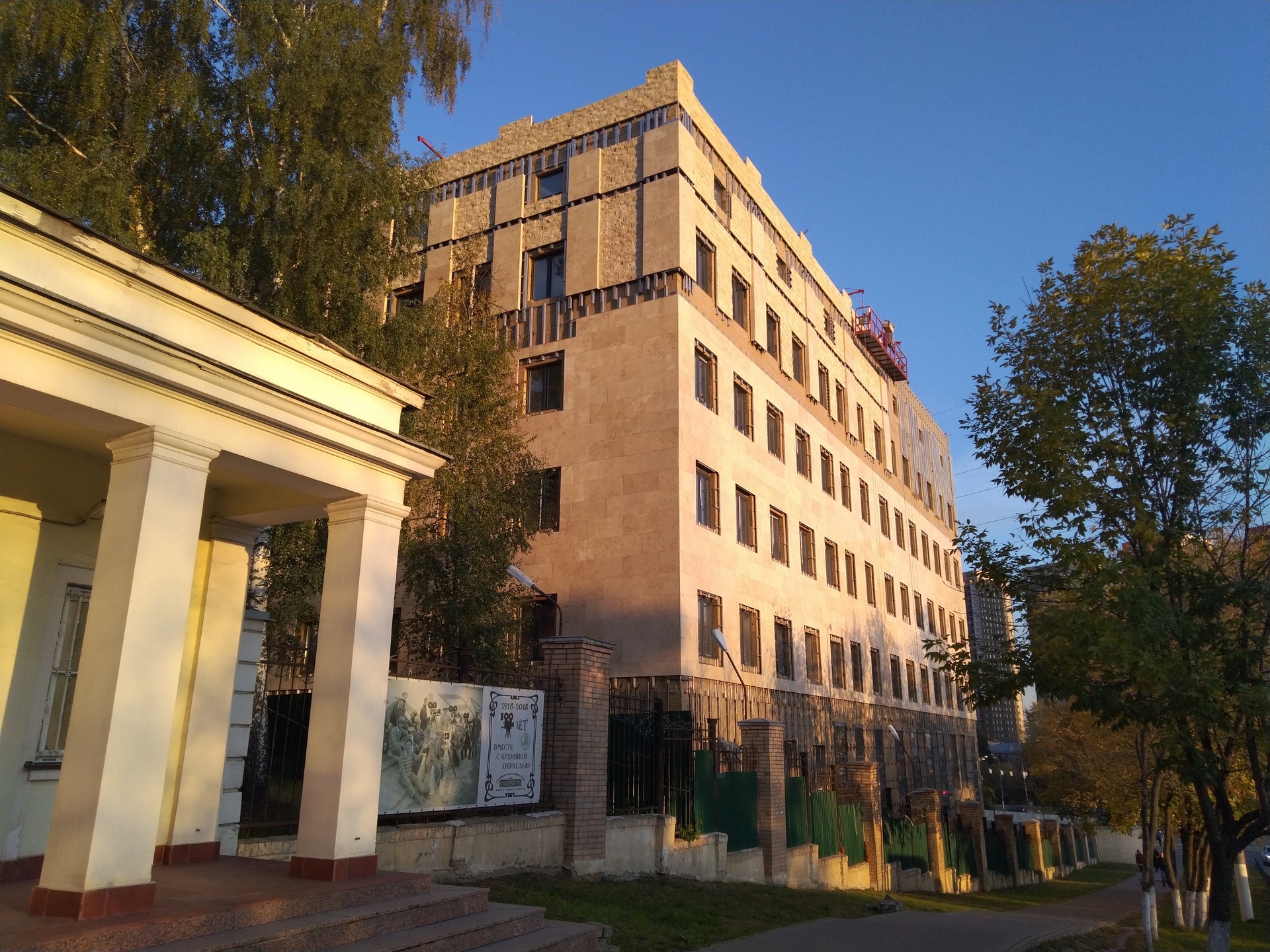 В рамках ФЦП «Культура России» продолжается, начатое в 2016 г., строительство лабораторного корпуса РГАКФД. За прошедший год возведены первый и второй монолитные корпуса нового здания, внешние стены, внутренние перегородки, установлены окна и витражи. Построена переходная галерея в существующее здание архива. Закуплены газовая котельная, лифтовое оборудование, оборудование для оснащения многофункционального кинозала, а также часть технологического оборудования для обеспечения современного хранения фотодокументов, сканирования, цифровой реставрации кино и фотодокументов.